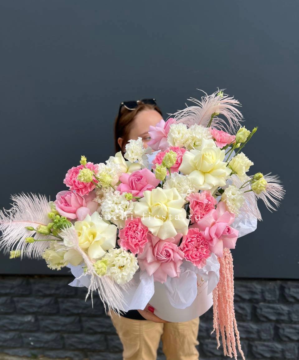 Цветочная композиция собрана с большим вкусом, взаимодействие с заказчиком с момента создания заказа и до получения цветов получателем, доставка к оговорённому времени. Всё супер!! ♥️Спасибо огромное ...