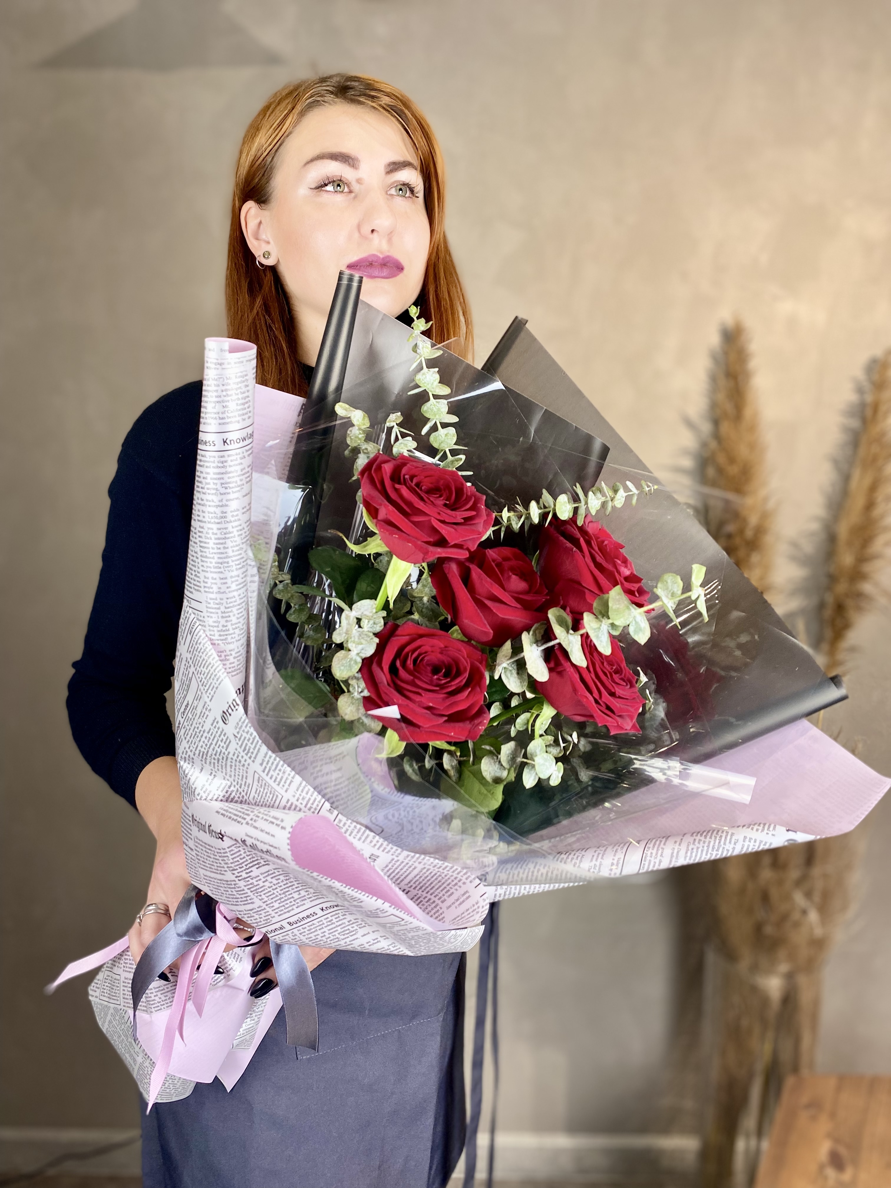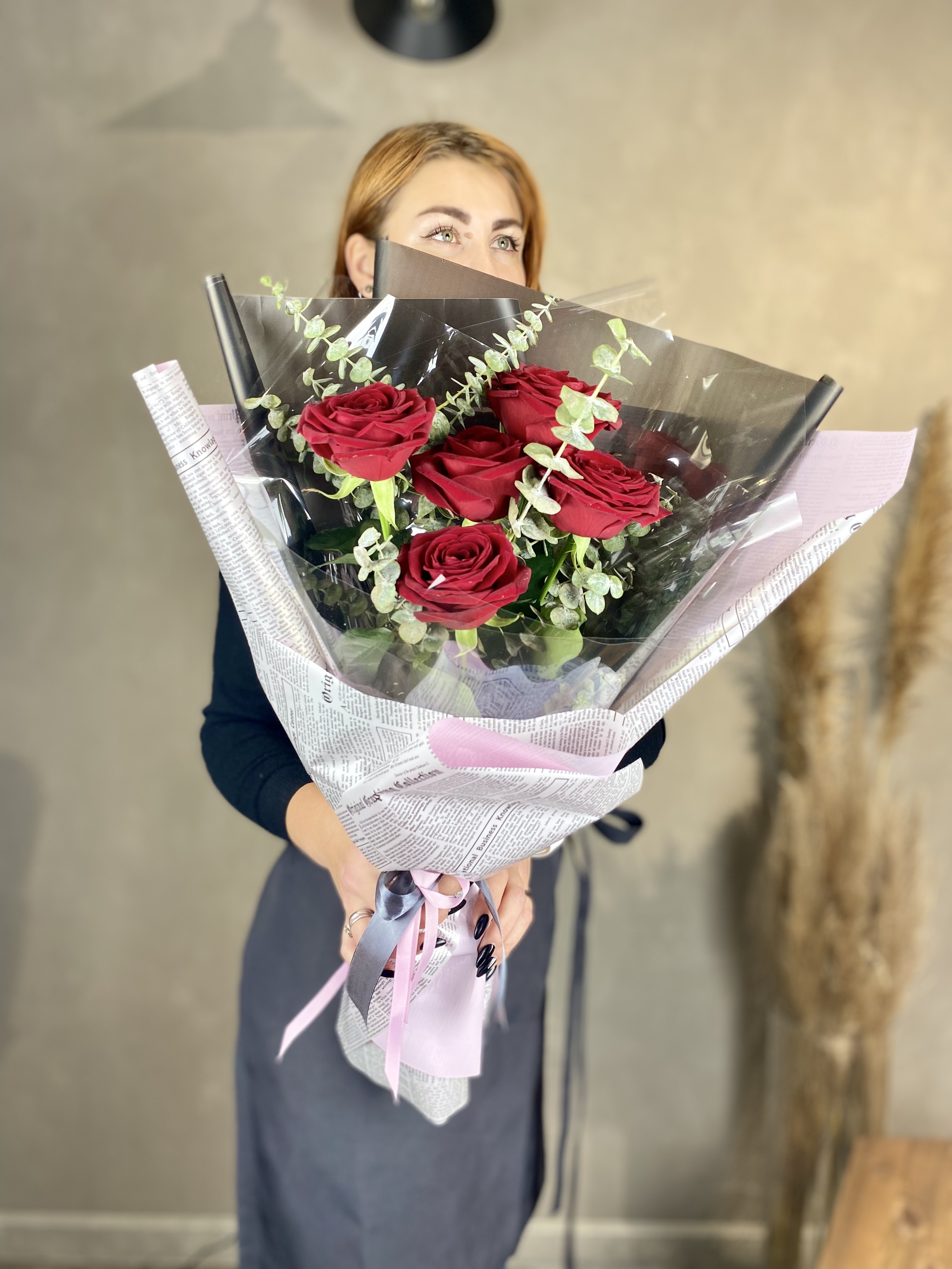 вывернутые розы, эвкалипт, лента, авторская упаковка.