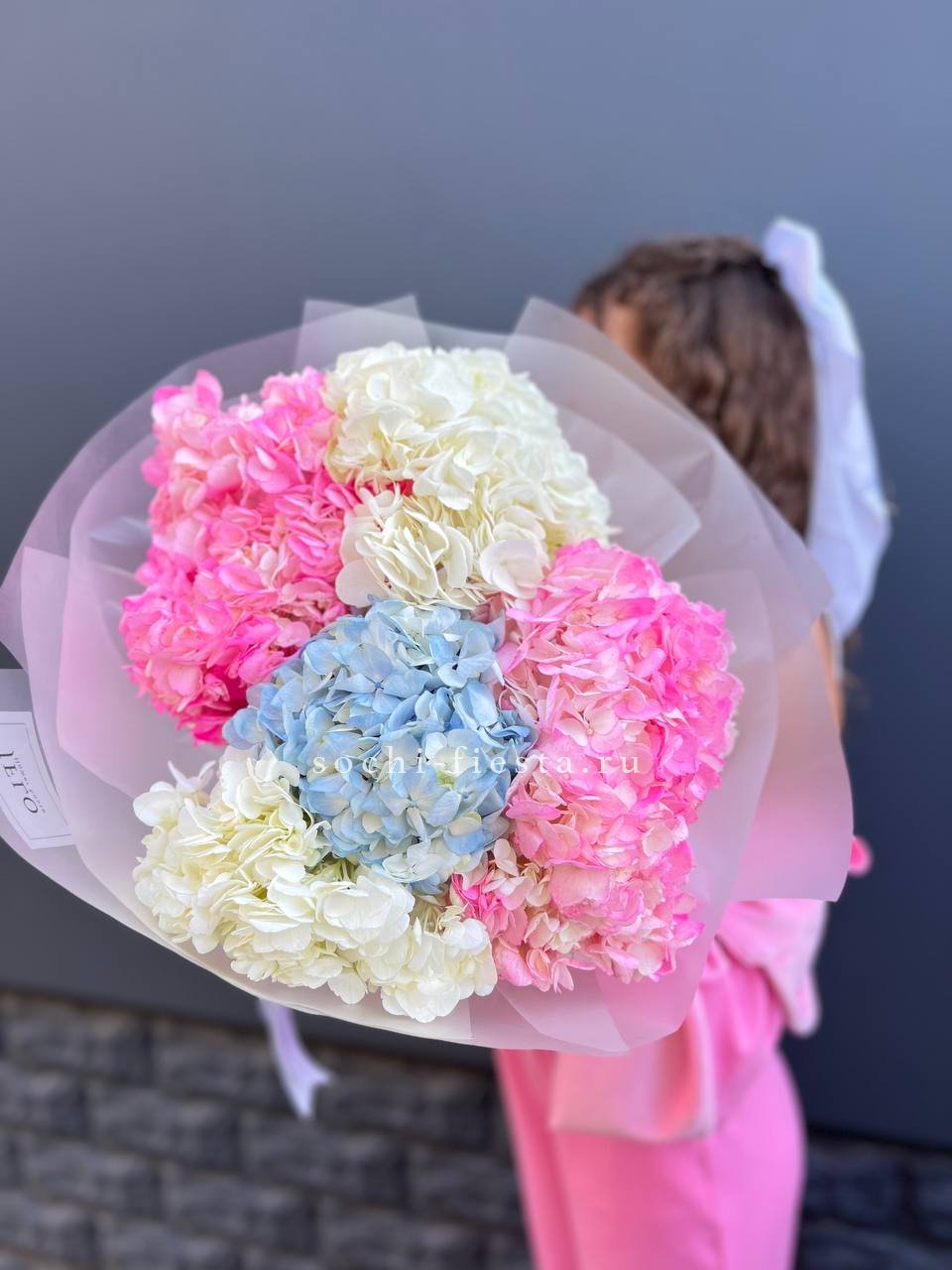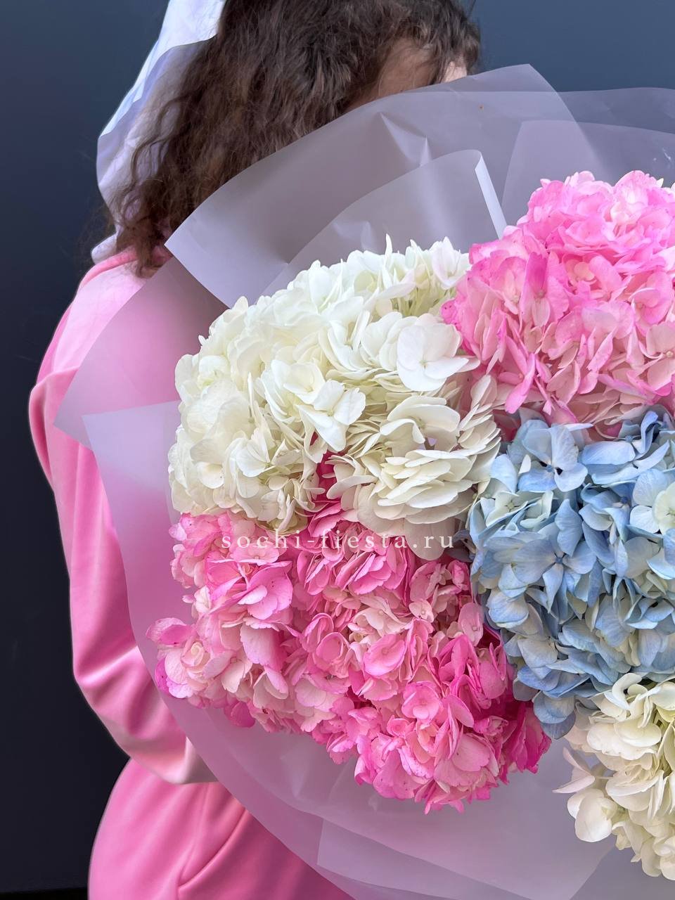 гортензия - 3 шт., лента, дизайнерская упаковка.