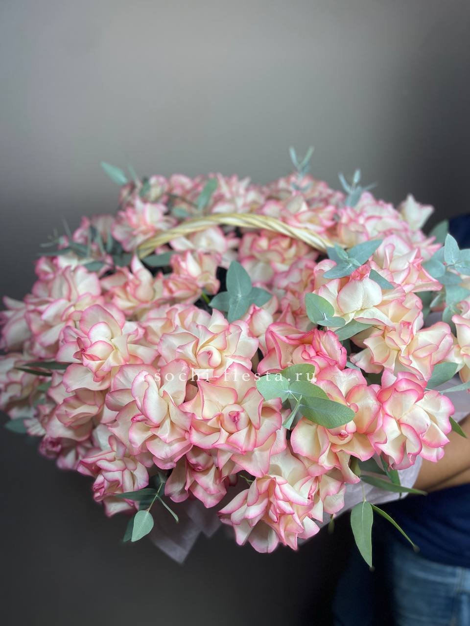 Для заказа товара "Букет кустовых роз с эустомой" с доставкой в Сургуте нажмите в корзину