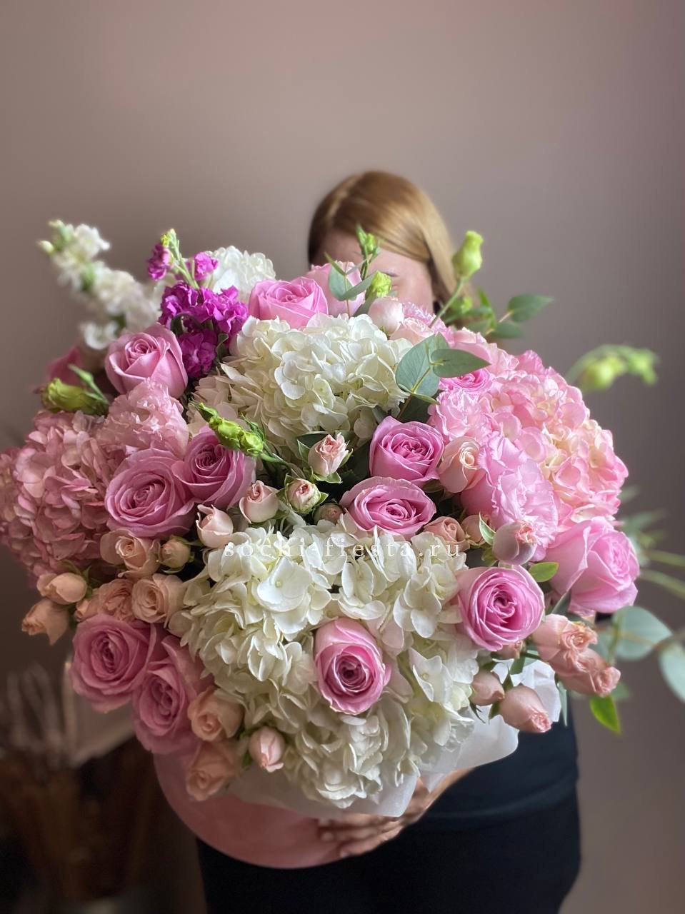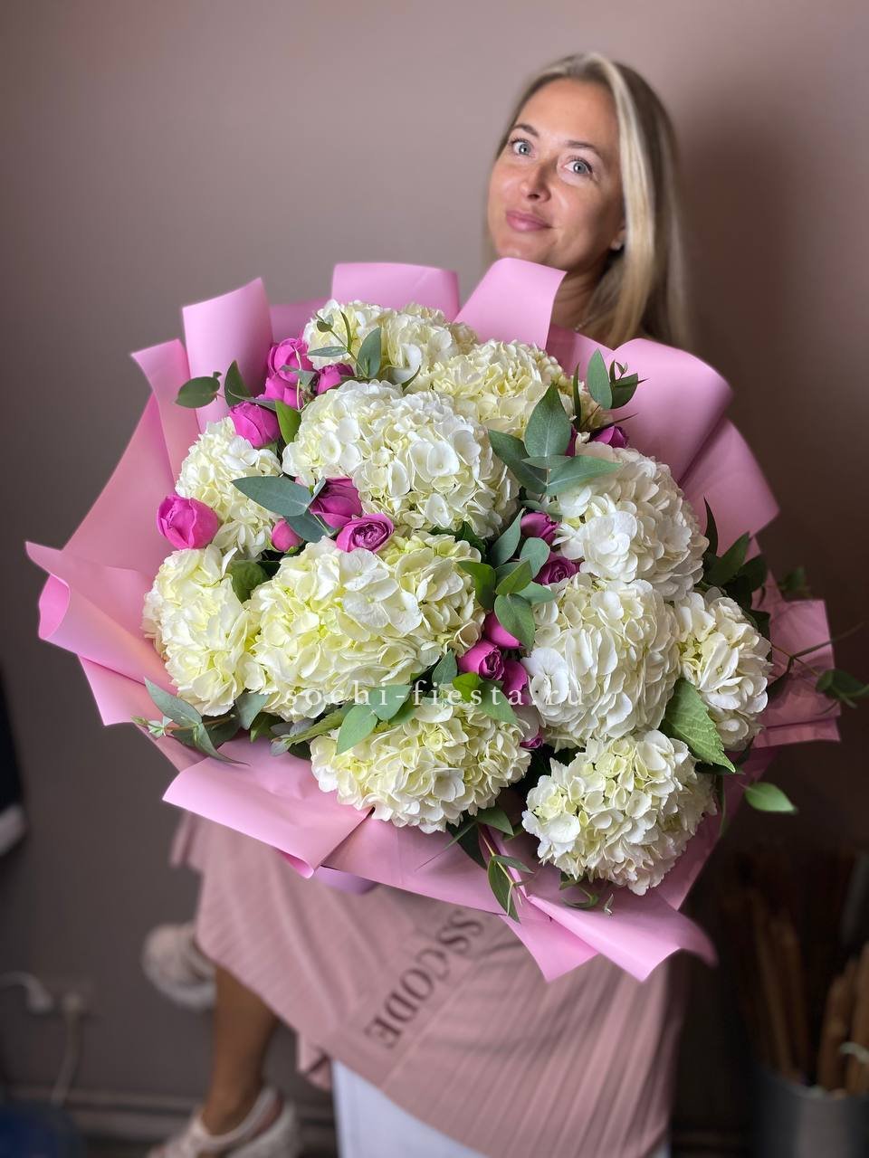 гортензия- 29 шт., дизайнерское оформление По желанию заказчика, композицию можно оформить в корзину.