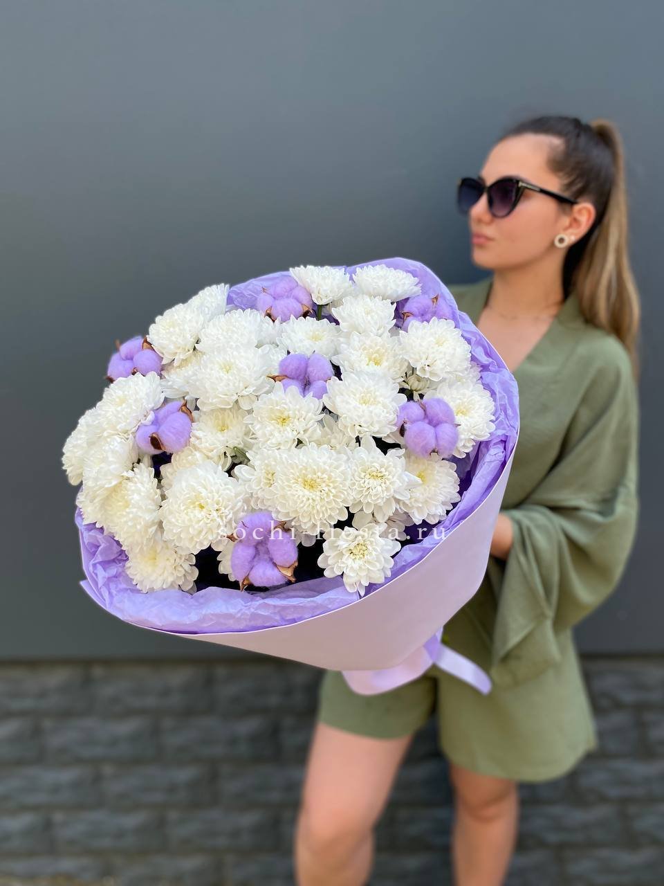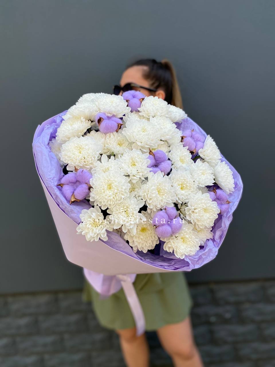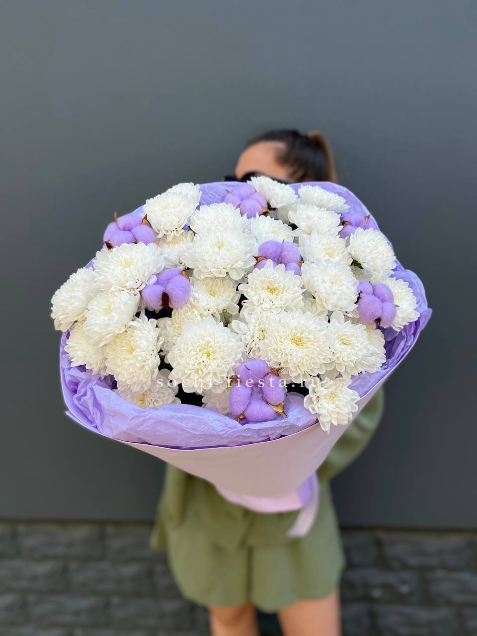 Для заказа товара " Букет хризантем и хлопка" с доставкой в Сургуте нажмите в корзину