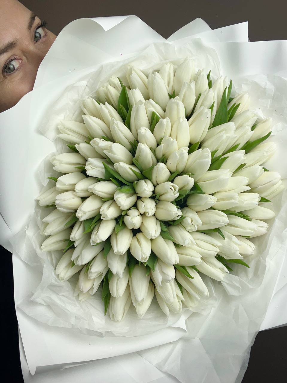 Для заказа товара "101 белый тюльпан №2" с доставкой в Сургуте нажмите в корзину