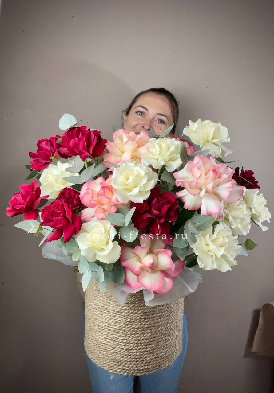 Для заказа товара "35 французских роз микс в джутовом боксе" с доставкой в Сургуте нажмите в корзину