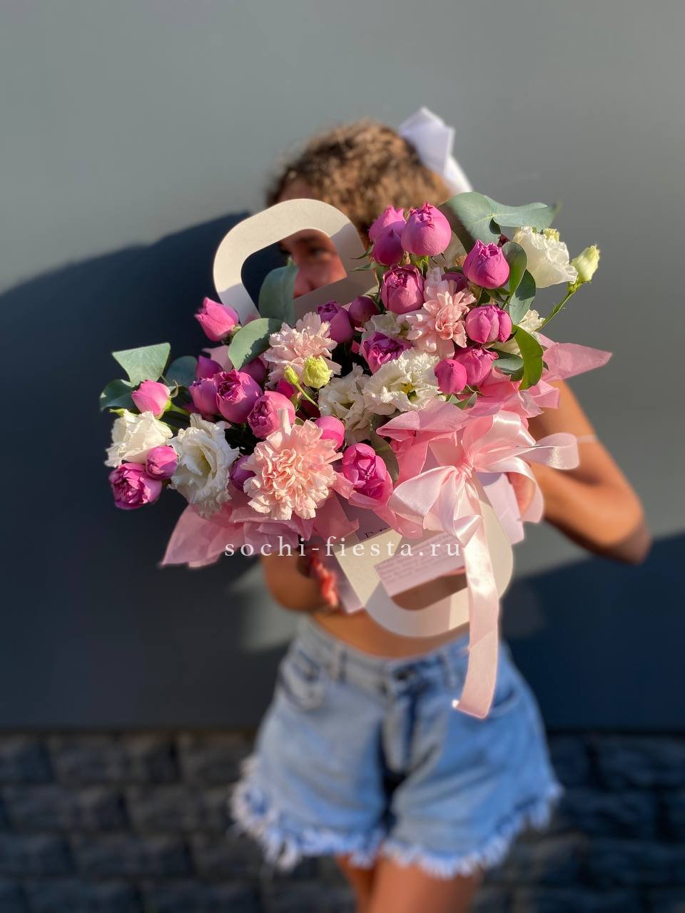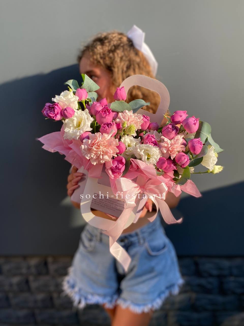 Для заказа товара "Сумочка с кустовой розой и диантусами" с доставкой в Сургуте нажмите в корзину