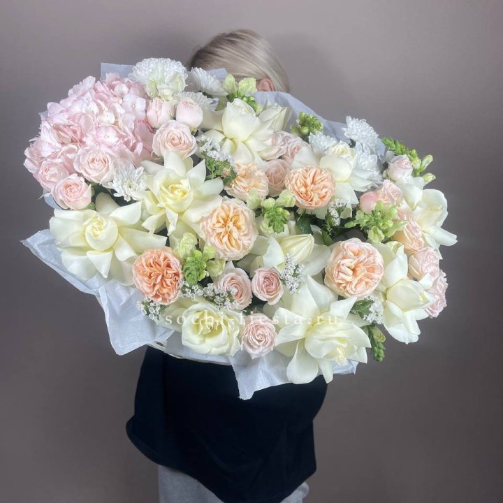 Каждый сезон приносит в Сургуте свой ассортимент корзин. Весной флорист создаёт корзины с тюльпанами и нарциссами — лёгкие, нежные, полные ощущения обновления. В мае-июне приходят пионы — Sarah Bernhardt, Bowl of Cream, Red Charm — главный флористический праздник. Осенью — хризантема в тёплых гаммах с декоративными ягодами и ветвями. Зимой — хвойные аранжировки с амариллисом для праздничной атмосферы.