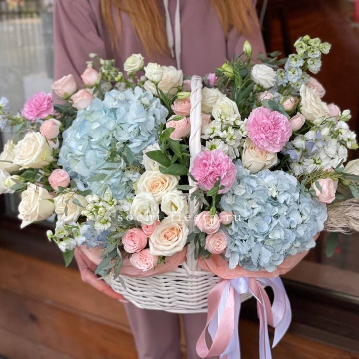 Доставка корзин в Сургуте — специальный транспорт или курьер с лотком. Флорист фотографирует готовую корзину перед отправкой и высылает клиенту фото для подтверждения. Самовывоз из студии — популярная опция: клиент видит готовую работу и везёт корзину сам. Флорист помогает с упаковкой для транспортировки в машине.