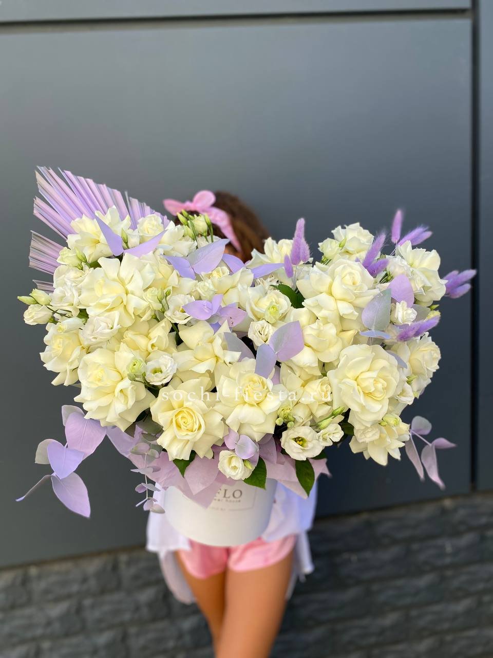 розы нежных оттенков, кустовые розы, маттиола, диантусы, лимониум,эустома.