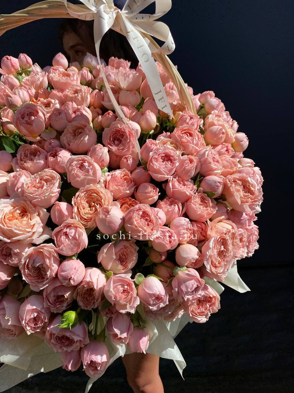 яркая корзина из 101 кустовой пионовидной розы сорта.