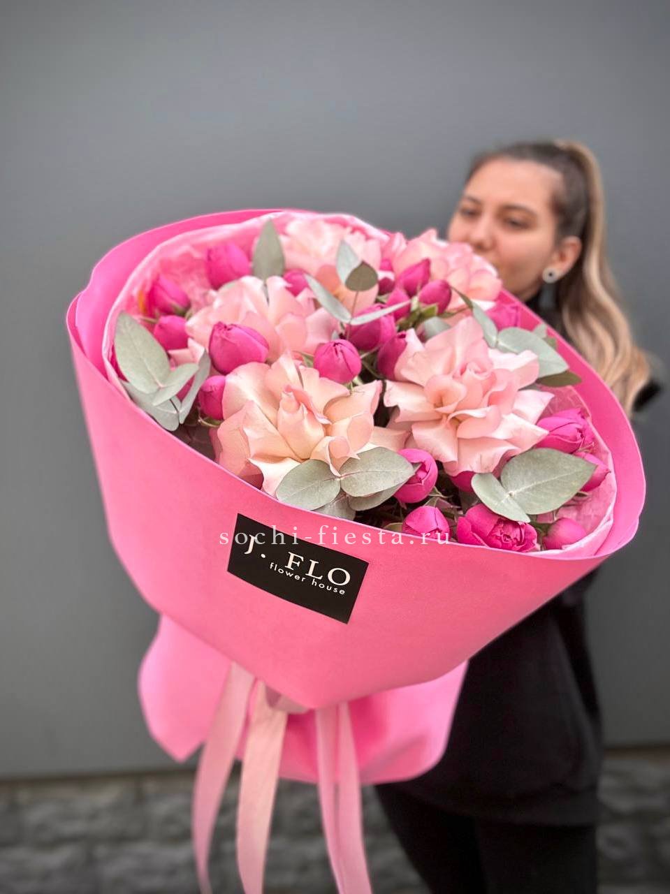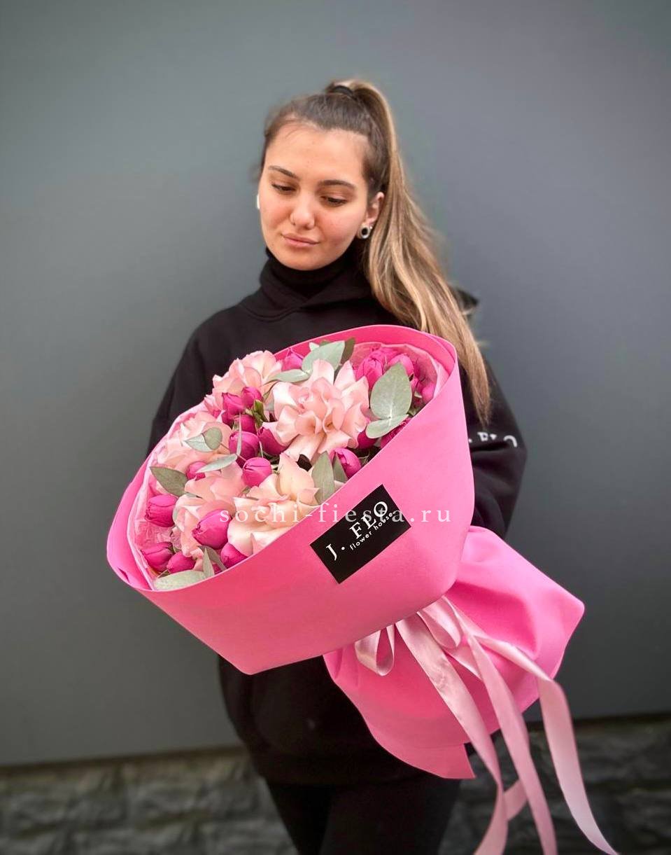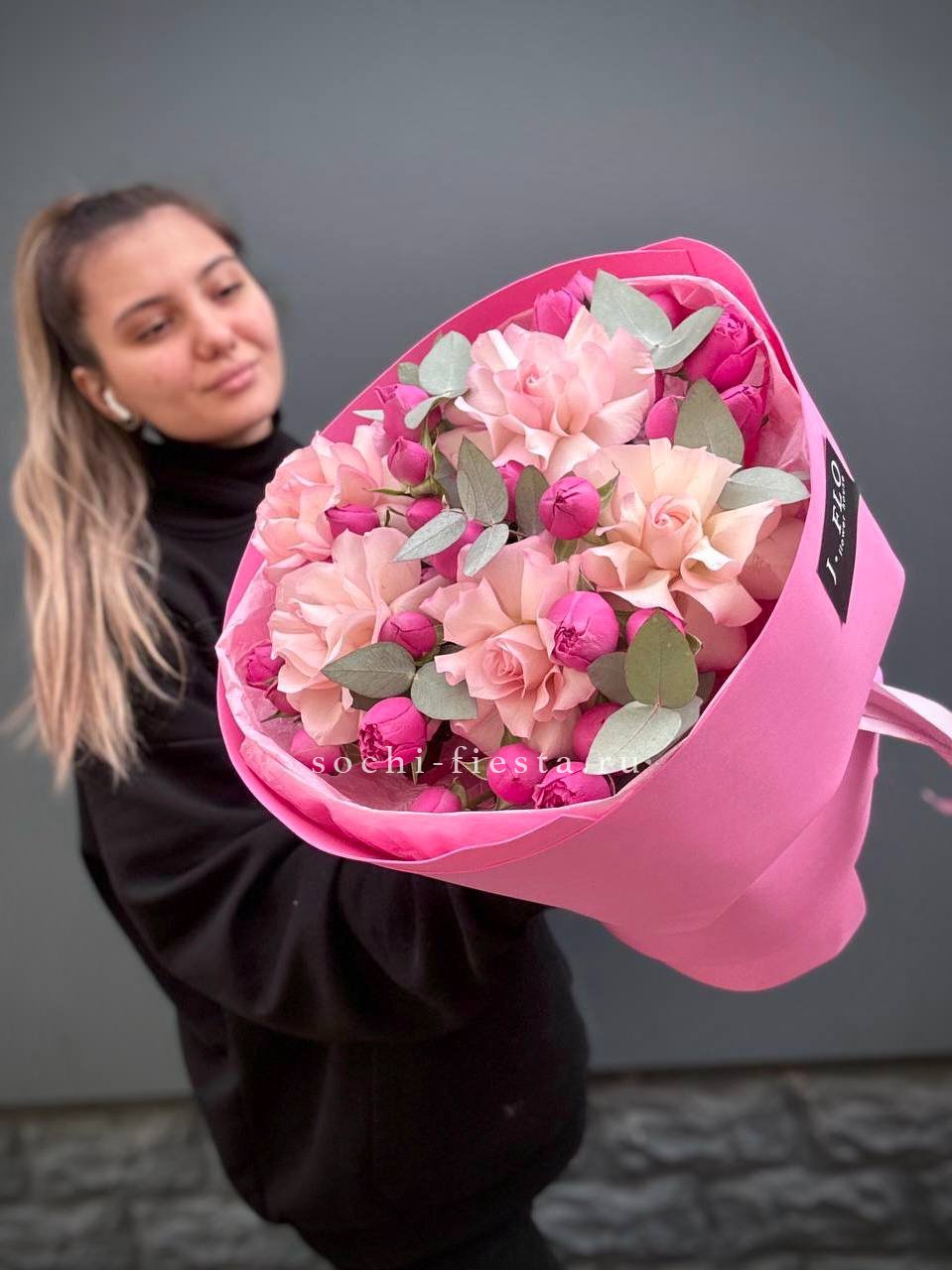 Для заказа товара "Букет французских и пионовидных роз "Ламиносо"" с доставкой в Сургуте нажмите в корзину